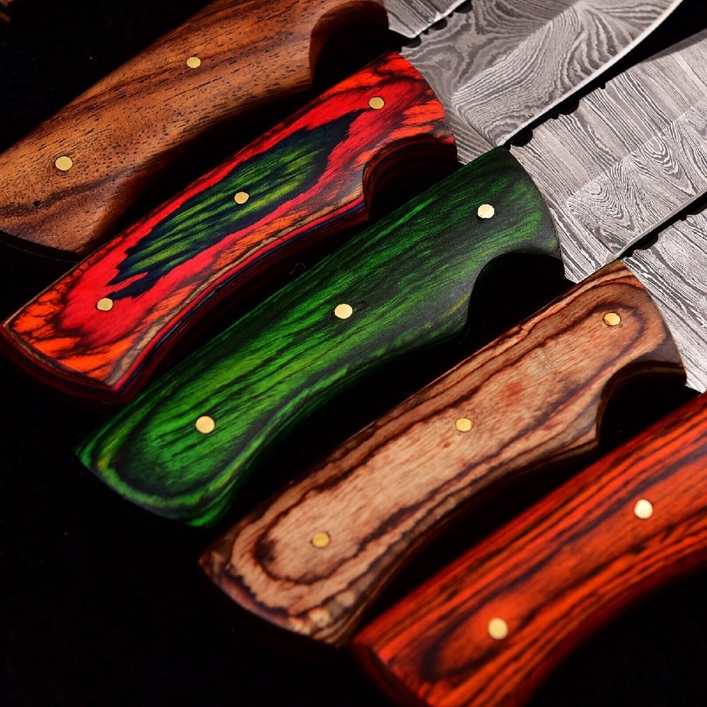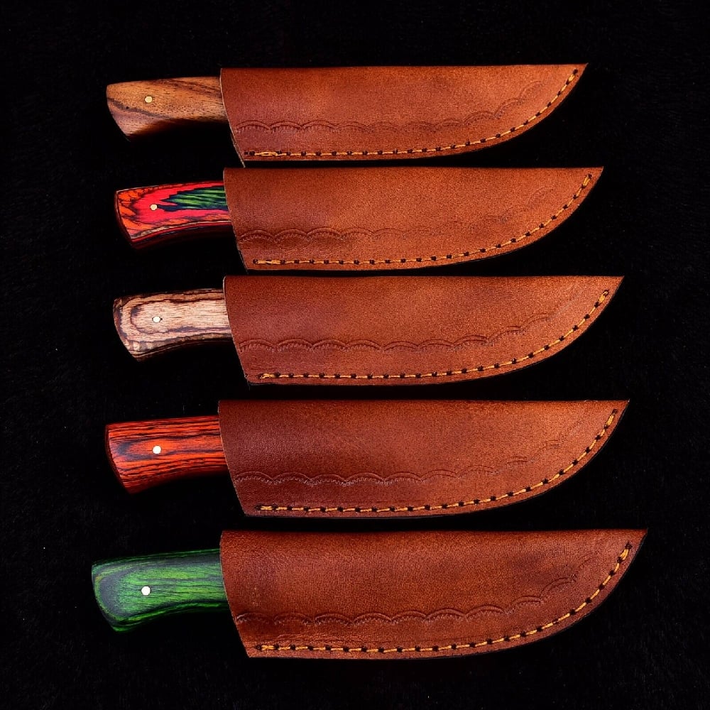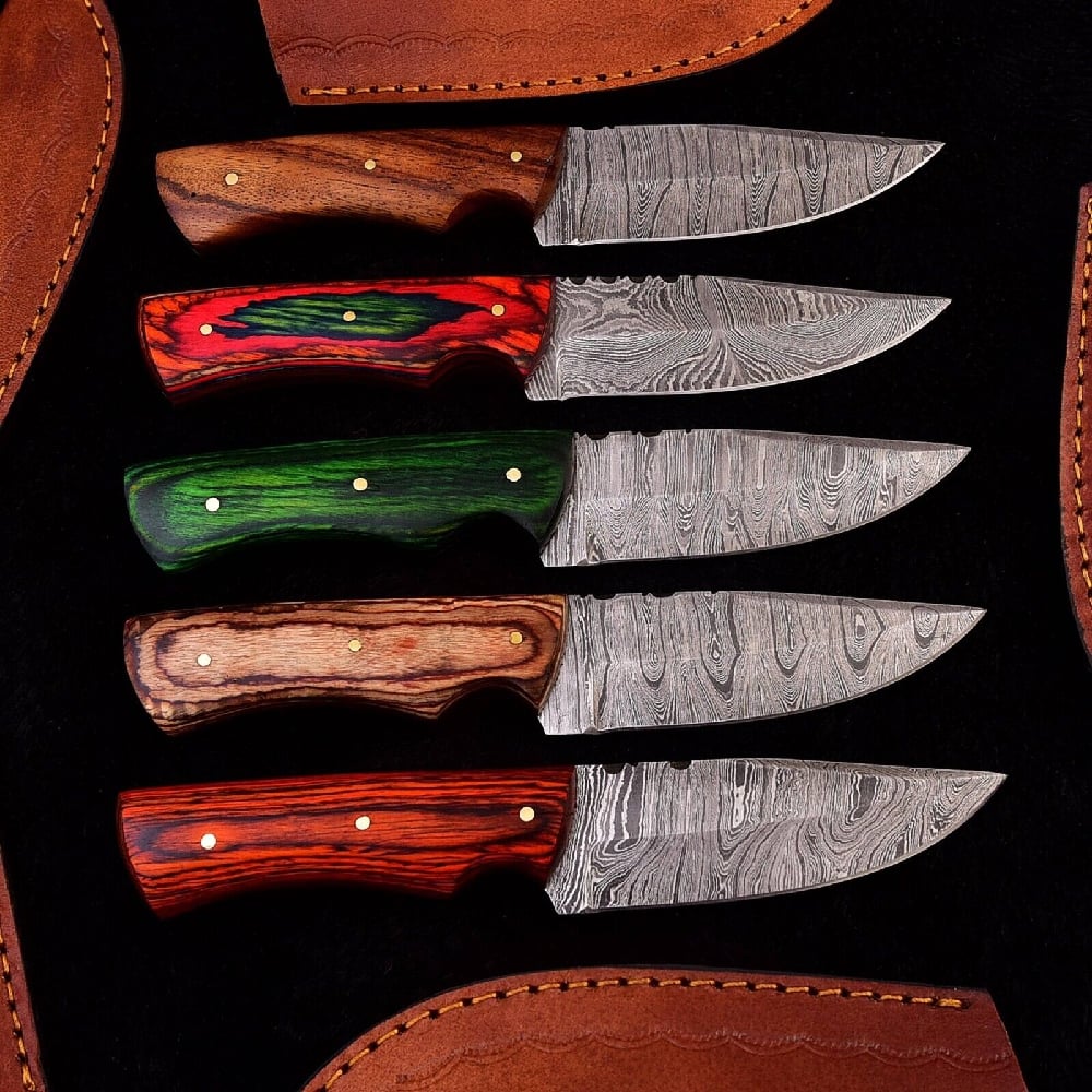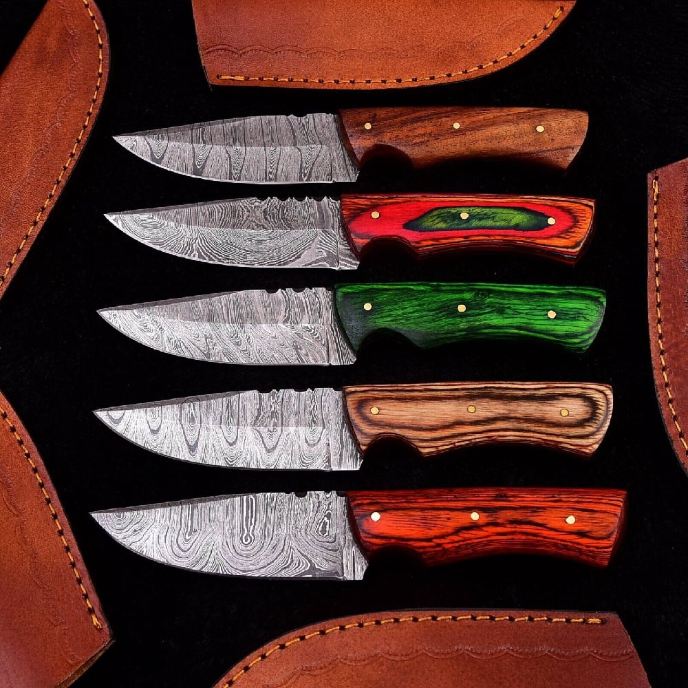 This 5-piece set of handmade skinner knives is built for hunters and collectors who value both performance and craftsmanship.