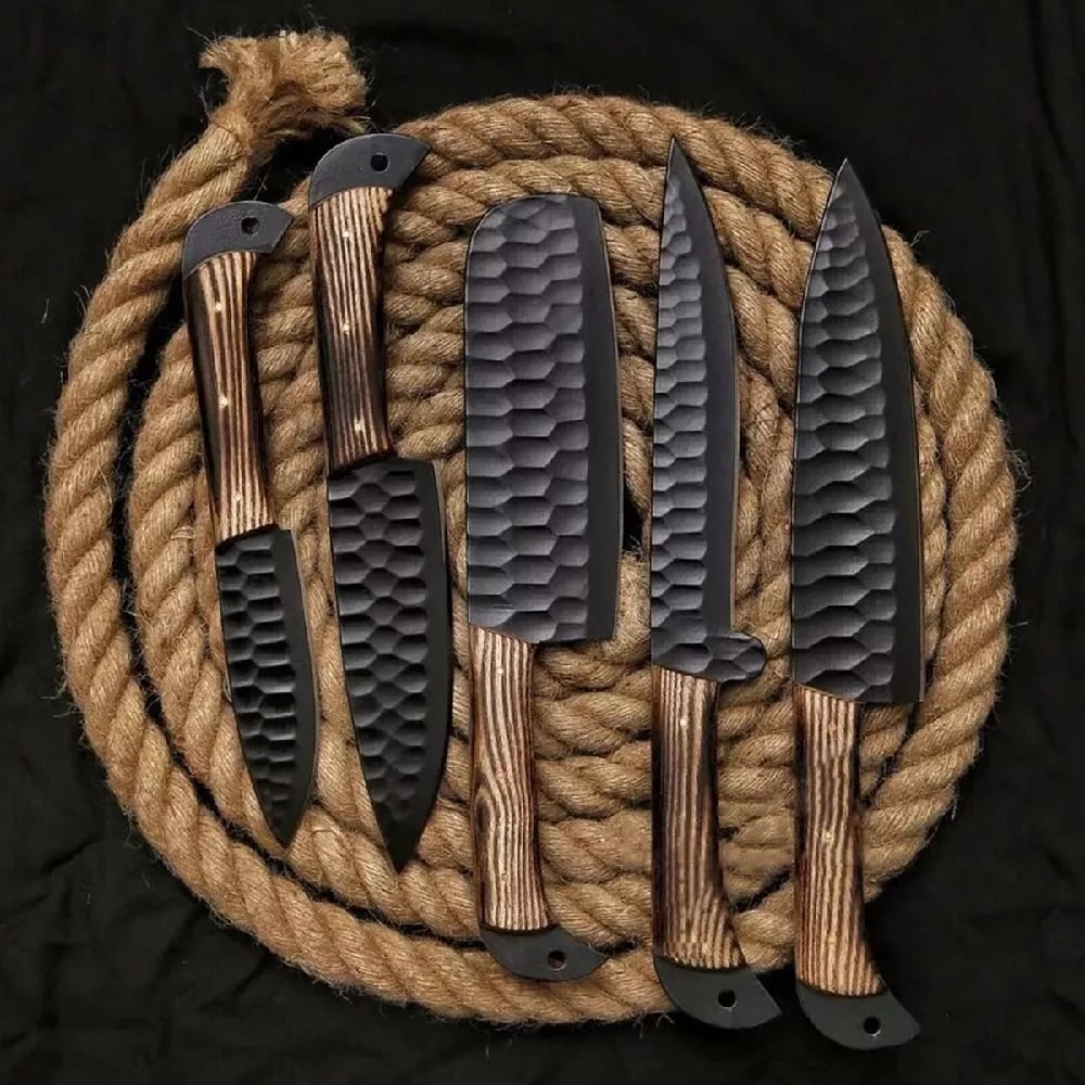 Bring craftsmanship and performance to your kitchen with this 5-piece handmade carbon steel knife set.
